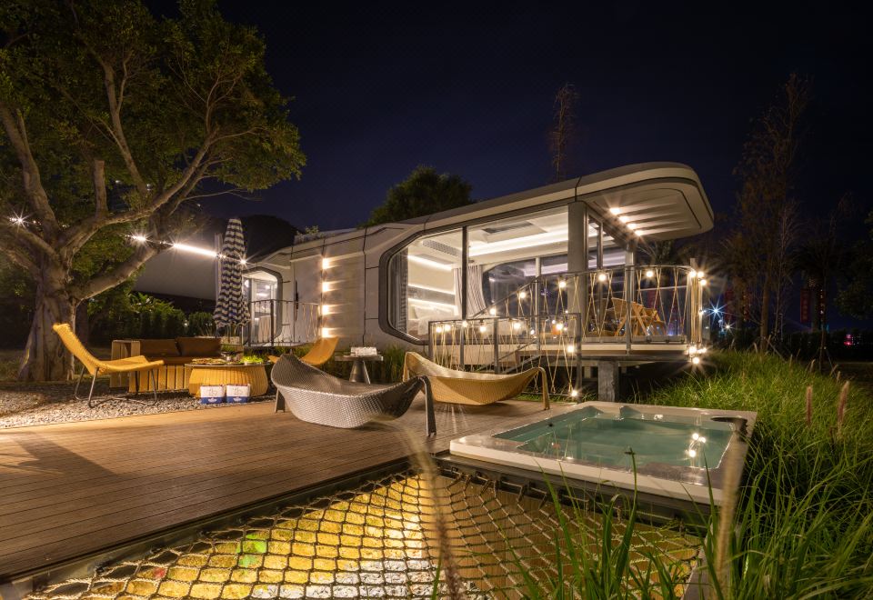 E7太空舱湖景热汤双床房·庭院+戴森吹风机+芝华仕床